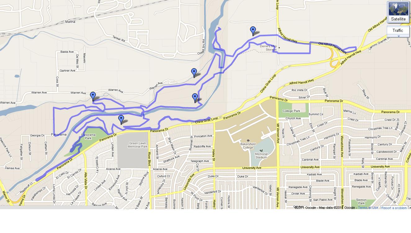 You have got to be kidding. Vicente wants us wanks to bring our high tech electronic devices to find our own beer (cerveza). I’ll bet one of he stops is Albersons. F*that I say so I broke into his computer to steal his original route with BN points already noted. Unfortunately I was discovered and he moved the starting point to Yokuts Park. Cabron