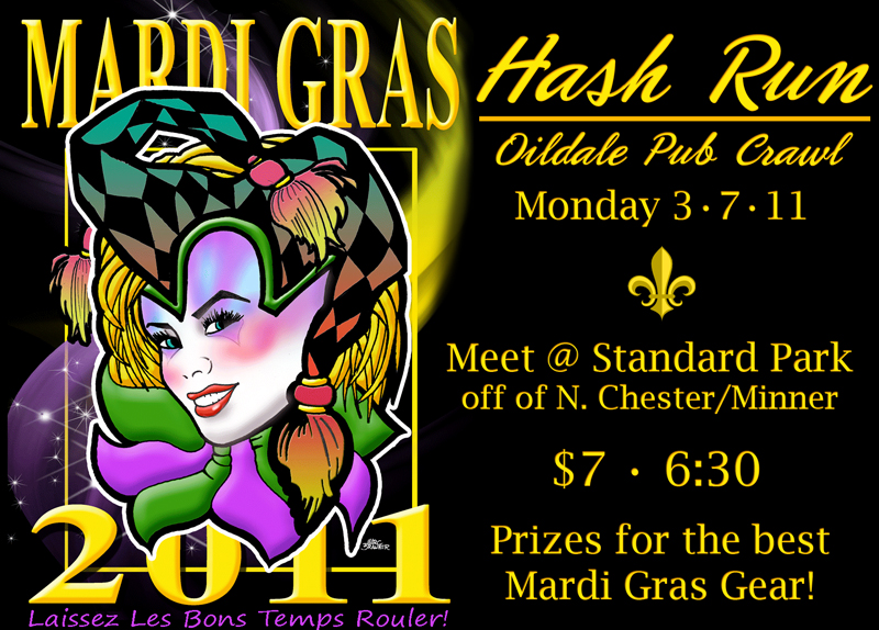 The Bakersfield Hash House Harriers love Mardi Gras so much that our Hares UDEO and Abercuminme & Bitch have decided to move it to Monday. So let the good times roll – Laissez Les Bons Temps Rouler in Oildale, California.