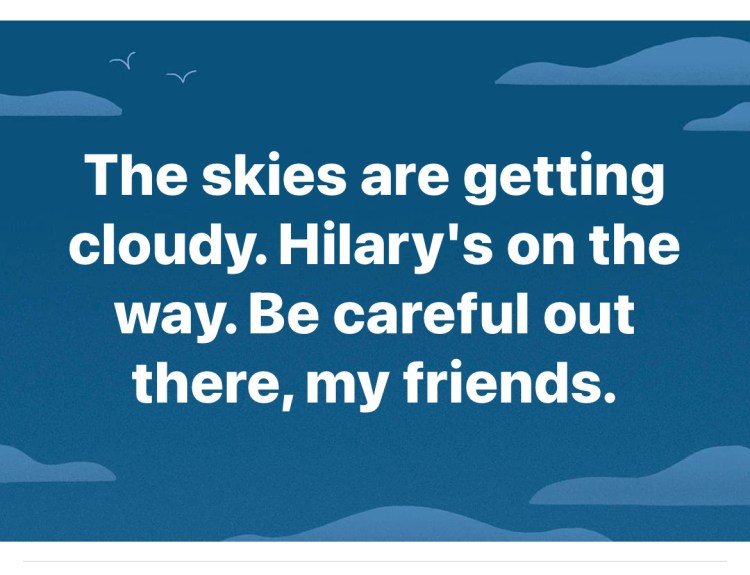 Depends on that Bi@t(h Hilary. Stay tuned… OnOn