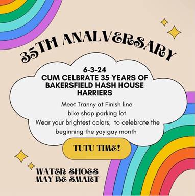 6:30 p.m. Bring $5 for the usual Hash goodies. https://maps.app.goo.gl/uYAp7a1qZut8ptYM9